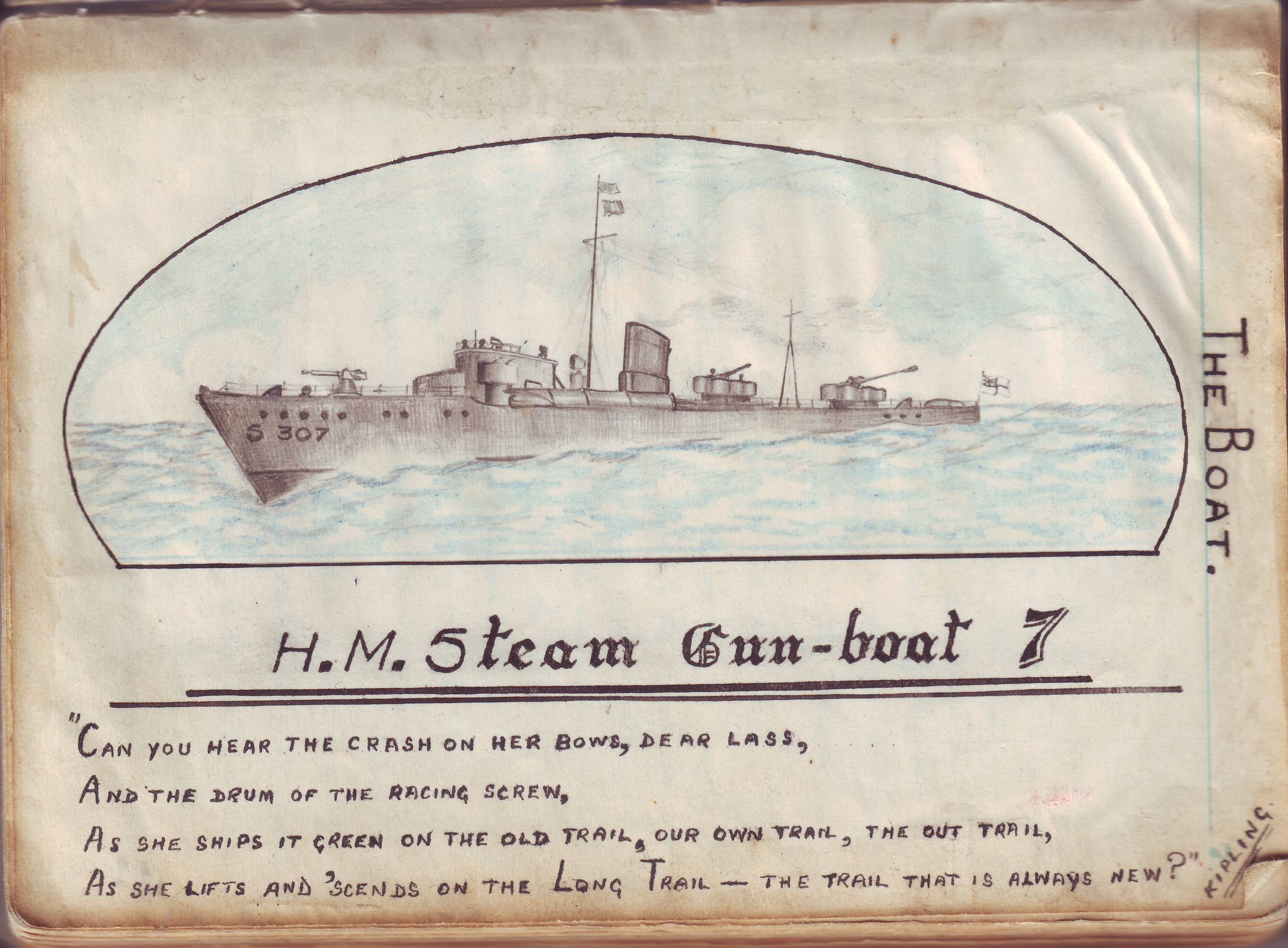 Just posted two scanned pages from my Dad's POW log; a titled name page, and a coloured pencil drawing of SGB7 with some naval verse by Rudyard Kipling below which I presume he drew and wrote. At the end of his log he gives five members of the PO's mess onboard H.M. L.S.T.9 onboard which, as he states: "I terminated my stay on the continent arriving in Tilbury on May 9th 1945." He was indeed one of the youngest Petty Officers in the RN at the time, partly because he had been selected for the Upper Yardman scheme. Looking closely at the photo of him in civilian rig, I'm wondering if it had been on him at the time of imprisonment; is that the Nazi swastika in the stamp at the bottom of the photo? The other photo is taken of him as an MN Radio Officer after the war. When I was a boy he was teaching morse to radio officers at Norwood Technical College in the early 70s before the establishment moved to Greenhythe.