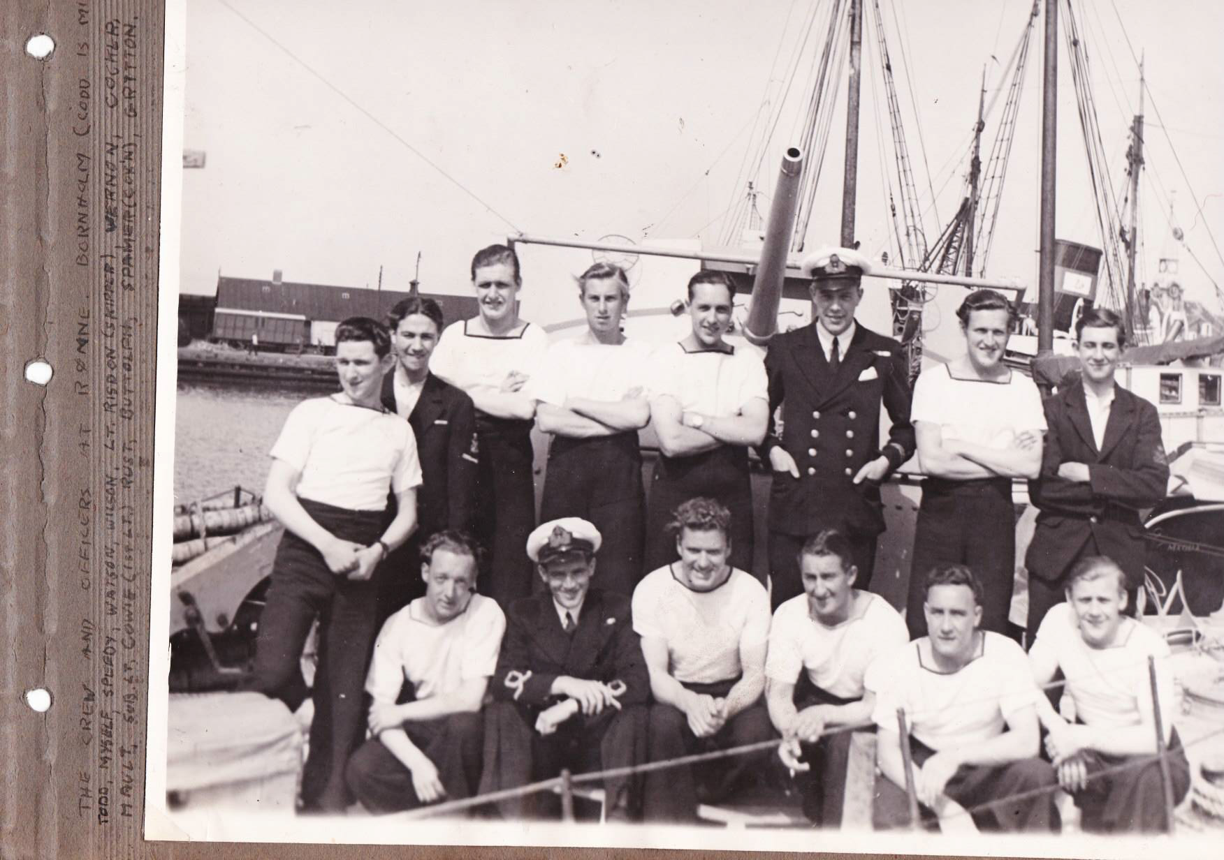 Thank you for the extensive information. I now know that the photos I have in my dads album are from june/July 1946 because LT Cowie was 1st lt of ML 206 at this time. He is in this photo of the crew Taken in Ronne. The Skipper is Risdon? My Father is second left at the back