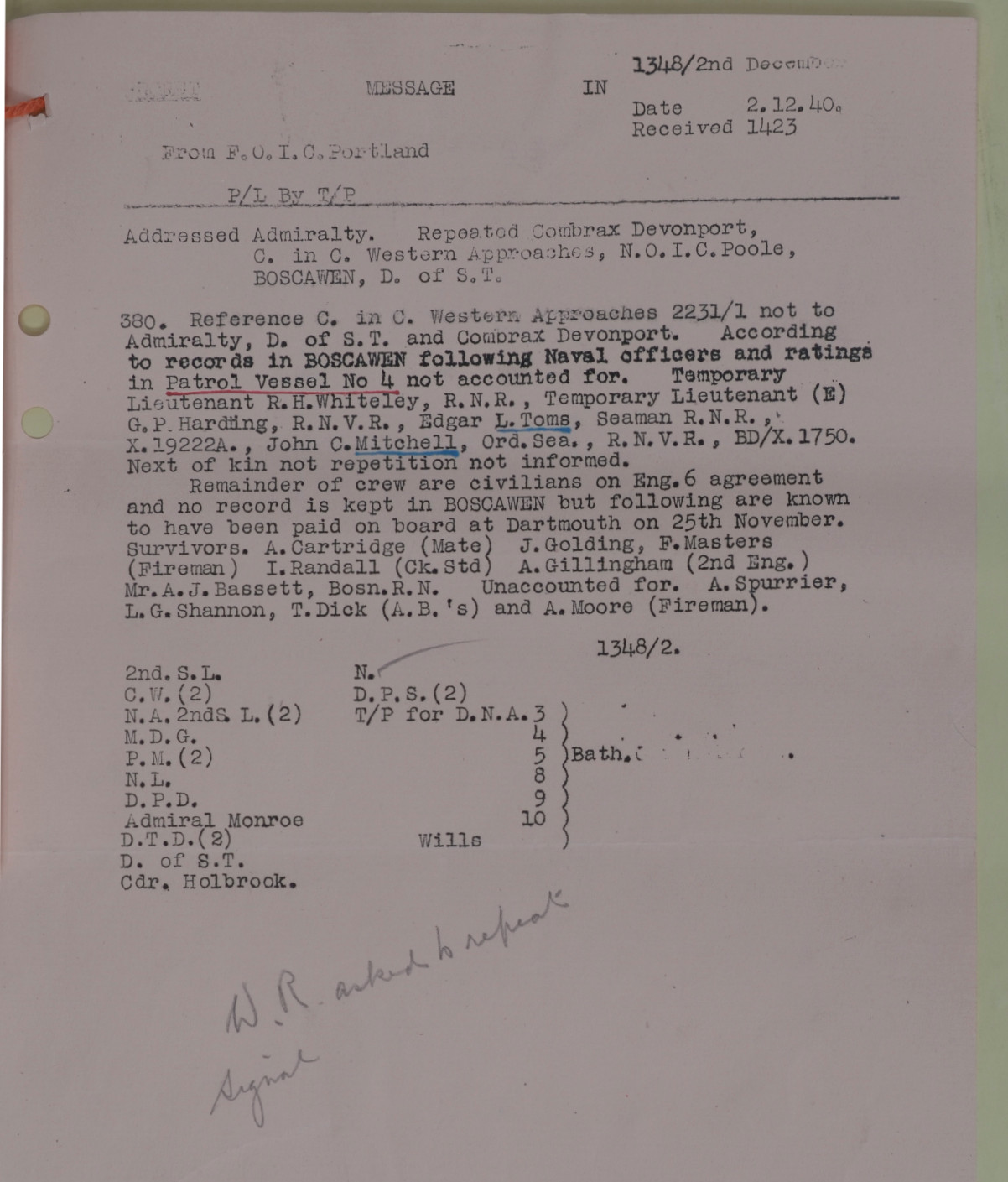 It seems like your Grandfather would have felt the incident very deeply, particularly as he was moved to write that letter on the 2nd of December, which must have been very soon after he returned to Poole, certainly it was dated the same day as the telegram on the cfv forum.
