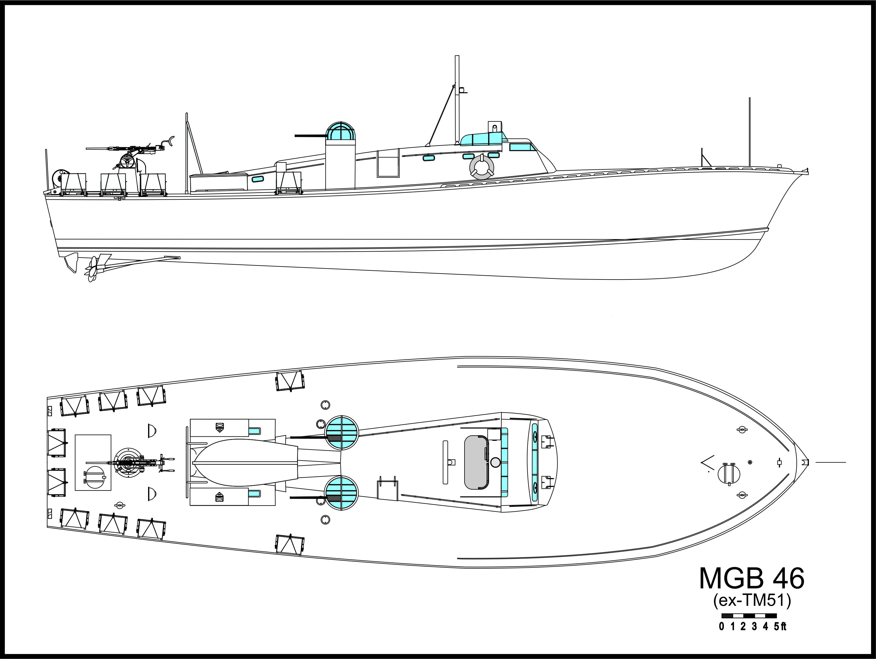 TM51 was a 70' BPB boat built for the RNN. Two sisters were under construction in Holland under license, but were captured by the Germans. They, in turn, completed the two and placed them in service as S201 and S202. TM51 escaped to Britain, eventually becoming MGB46. The turret weapons are single 20mm Hispanos.