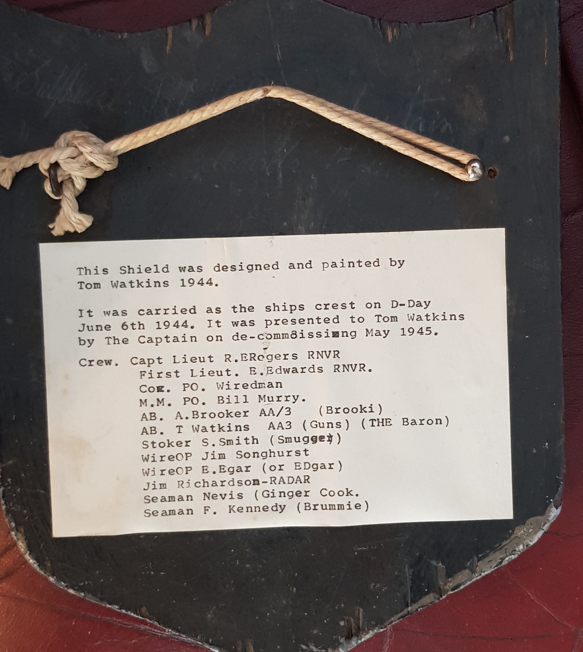 We do have the crest carried on 56 during the d day invasion, it lists the crew and my grandad painted it. They held a competition to design one and the winner was to be used during there time at see. It was presented to him upon decommissioning May 1945.