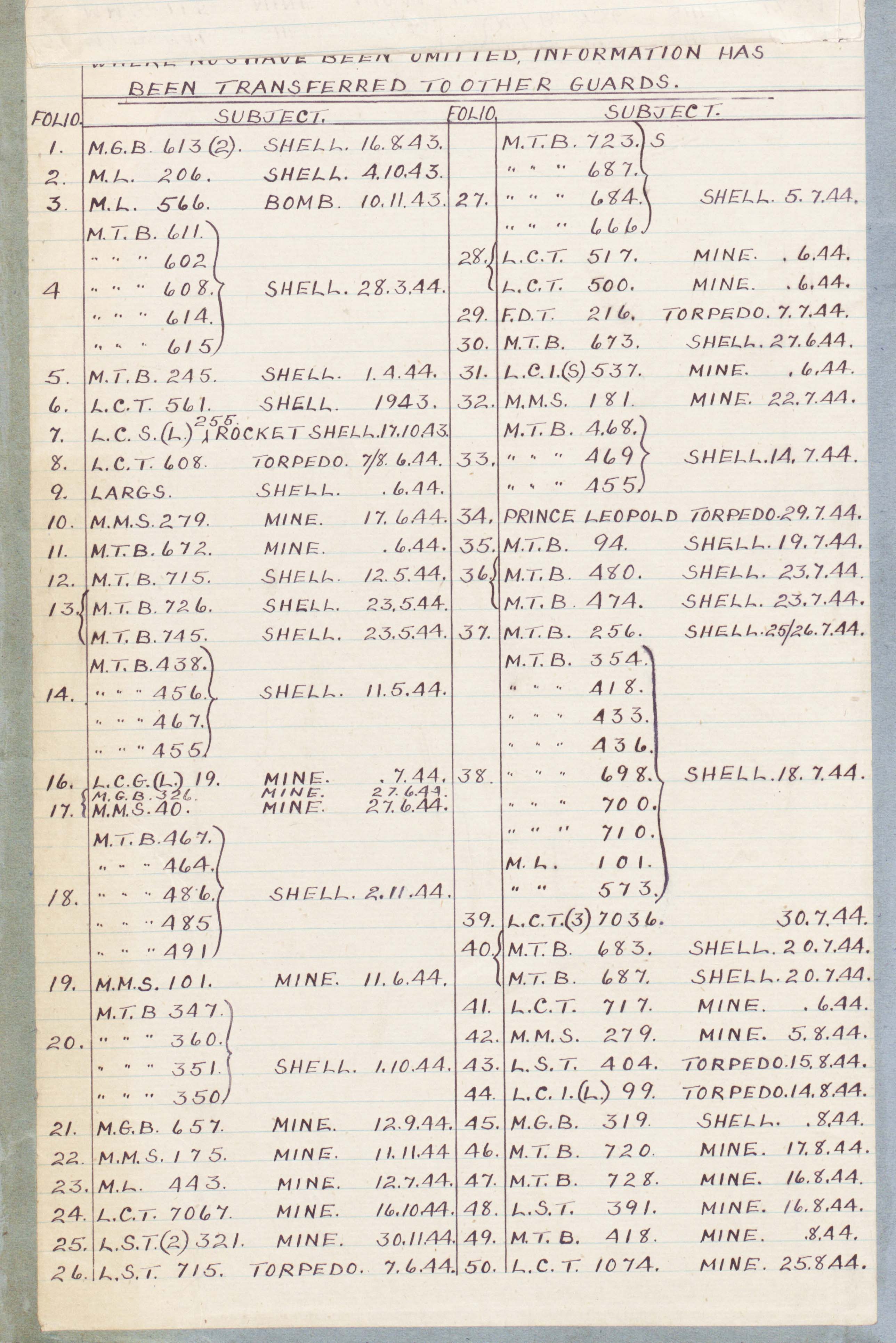 However all the bases of all MLs (at successive dates) can easily be looked up at the National Archives in the 1940-45 Admiralty Red Lists (bases of minor warships)--ADM 208/1, 208/2 etc. Each craft can be found in the Index, then looked up at its base. A list was printed each fortnight.