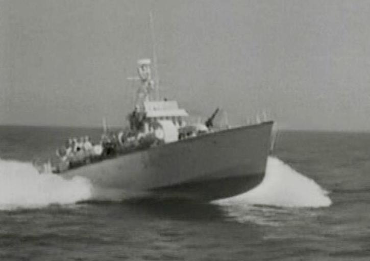 P1602 posing as a German E Boat in the film 'Appointment with Venus'