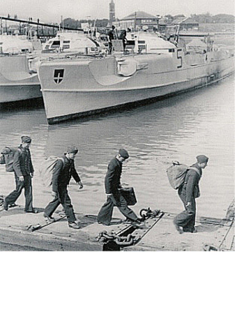 24-5/8/43 MTB 347, MTB 348, MTB 349, MTB 351 and MTB 356 (Senior Officer) are on patrol off Ymuiden when they encounter two much larger enemy vessels. The enemy attack, inflict damage and keep the MTBs out of torpedo range. MTB 349 is severely damaged with one officer killed and another wounded. MTB 356 is damaged by a burst of 20mm shells.