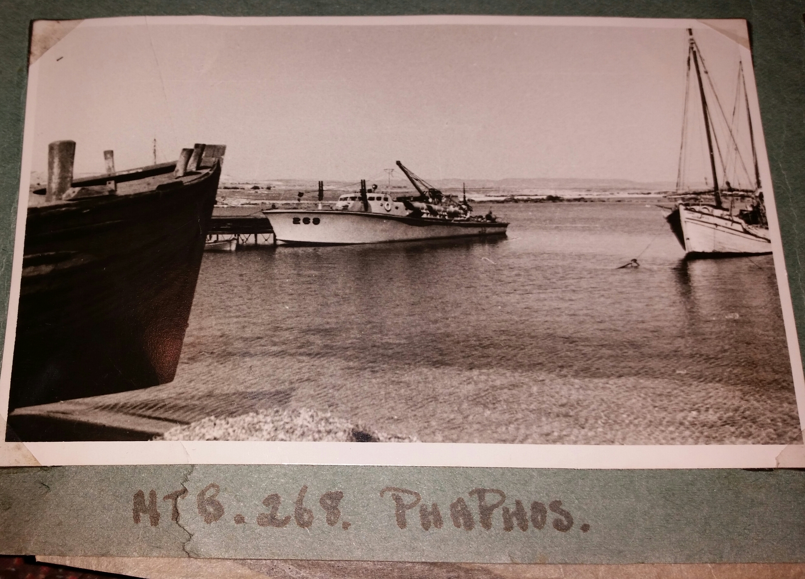 To our knowledge Grandad served on MTB's at some point in the war but I can't find mention of MTBs in his service record. He was in the Navy 1936-1948. He was stationed at HMS Attack, HMS Hornet and HMS Mosquito for a period (Sep 41-Sep 42) which I'm aware are shore establishments but I'm wondering if this was when he might have been on MTBs? Looking through his photo album I have come across pictures of MTB's (most sadly missing) numbering 268, 265, 266, 309. The pictures I do have say "MTB 268 Phaphos" and another "268 on the slips Hiafa". There are 2 crew photos entitled "Crew on the Beano" (presumably a jolly?) and "Wine Distillery Stroumbi". I'm assuming this could be from his time at HMS Mosquito? Looking at the boat numbers possibly 10/15th Flotilla? Dad also says he was on MTB's in the Channel/North sea but no other info I'm afraid at this point.