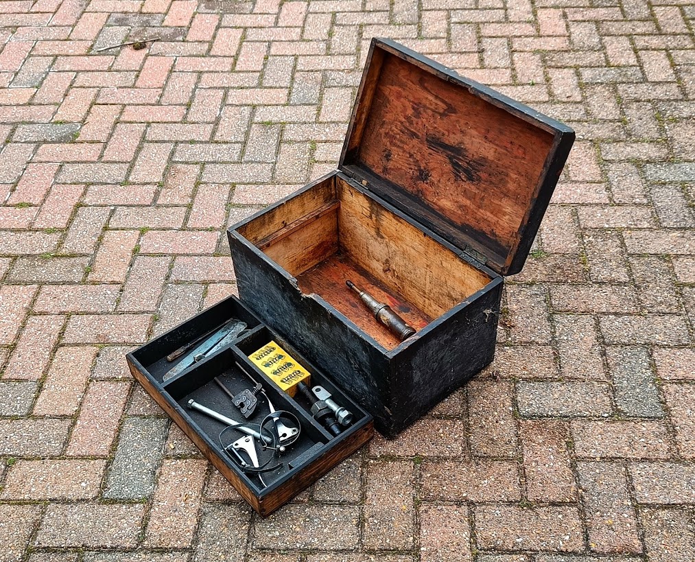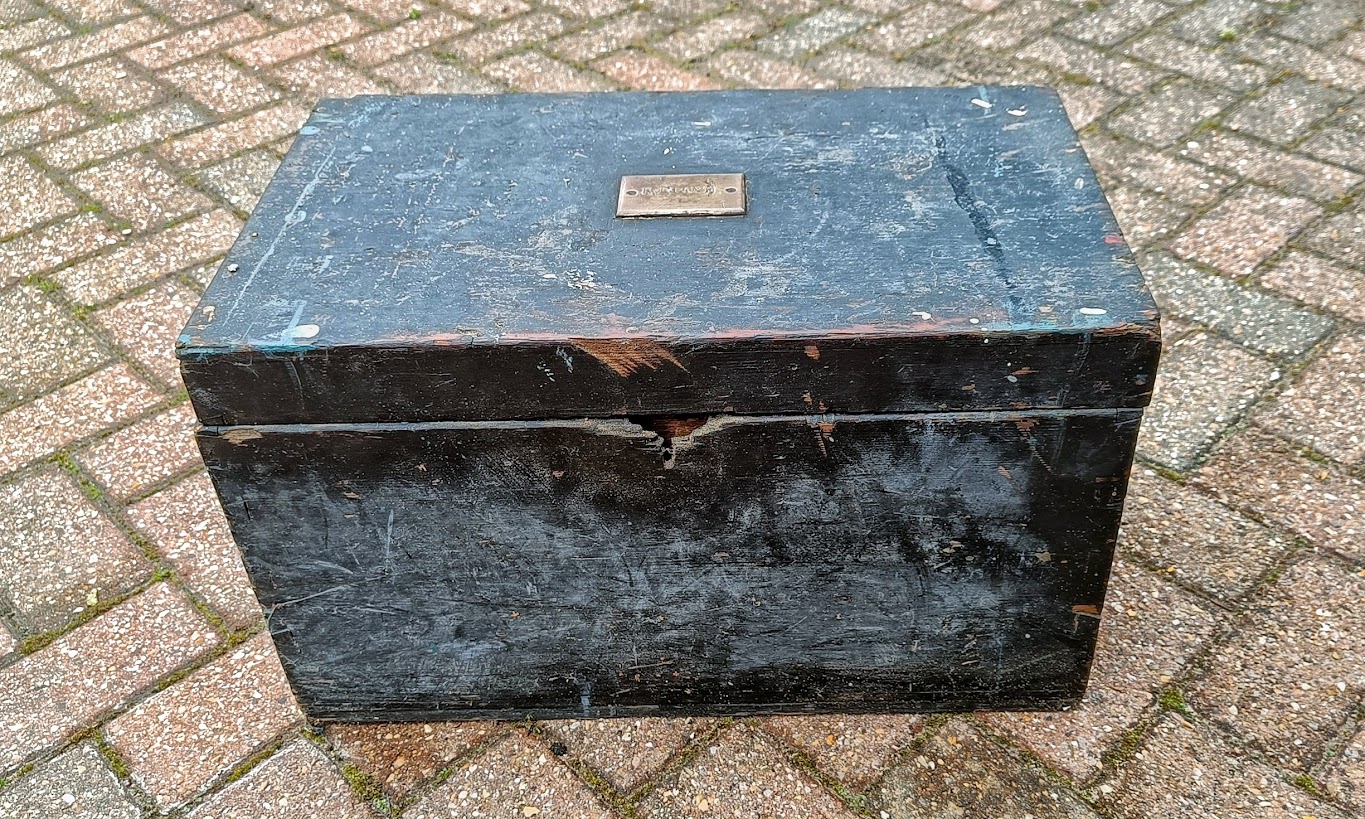 The lock has long disappeared and the box has lain in my garage for many years.