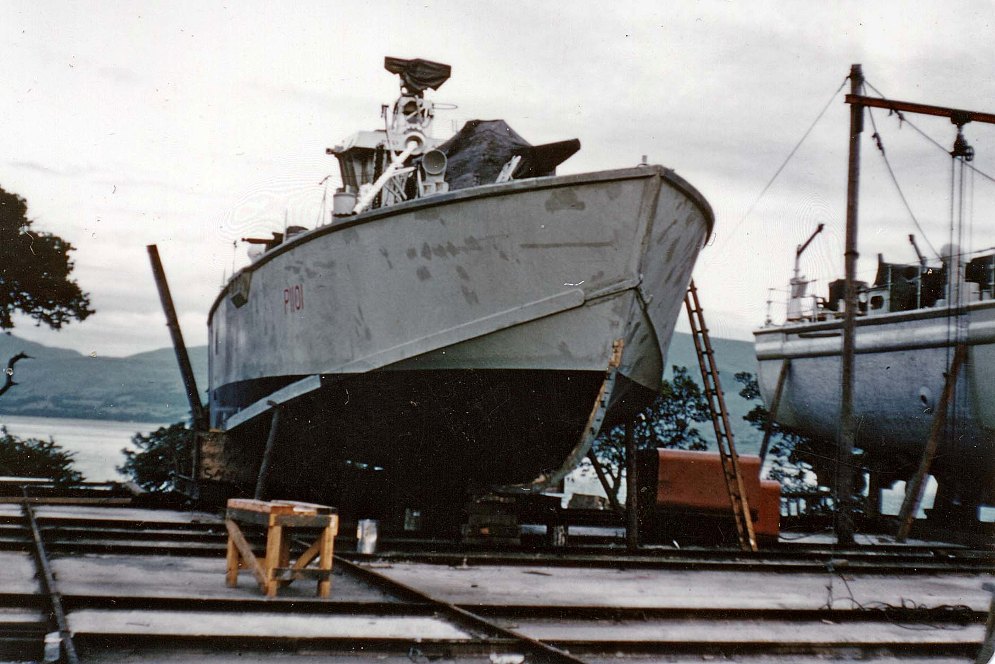 The Burmese Government also ordered a set of five all riveted aluminium clad FPB’s complete with a bespoke auxiliary battery-electric ‘slow-speed drive’. My father said it was for silently creeping up the many river creeks to search out pirates, smugglers, bandits and gun-runners – all exciting stuff for a youngster to hear! The aluminium hulls were specified to withstand marine worm attack that would have been a problem in the warmer tropical waters.