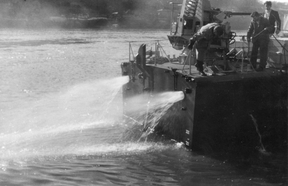 After further short sea trials that lasted a couple of days, she was 'signed for' and the 7th Ferry Crew finally sailed her down to Weymouth for shipment as Deck cargo for Rangoon. A very cushy number for the Stokers (2 plus 1 Leading Hand) as we were not allowed in the Engine Room control booth for the whole journey South - overnight stop at Falmouth - Happy Days