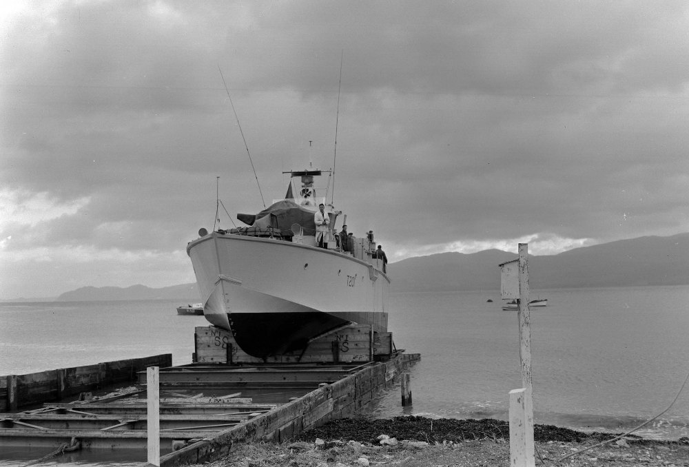 The last 'foreign' FPB that SARO built to the Dark Class design was shipped to Japan 29 July 1957. I found only a couple of very hazy photos on the internet, but have just found four more while scanning through eight to ten thousand surviving Saunders-Roe negatives. Many are superb, but equally, many are in very poor condition. I will choose a small selection of the better ones for you all to see. (click on images for larger views)