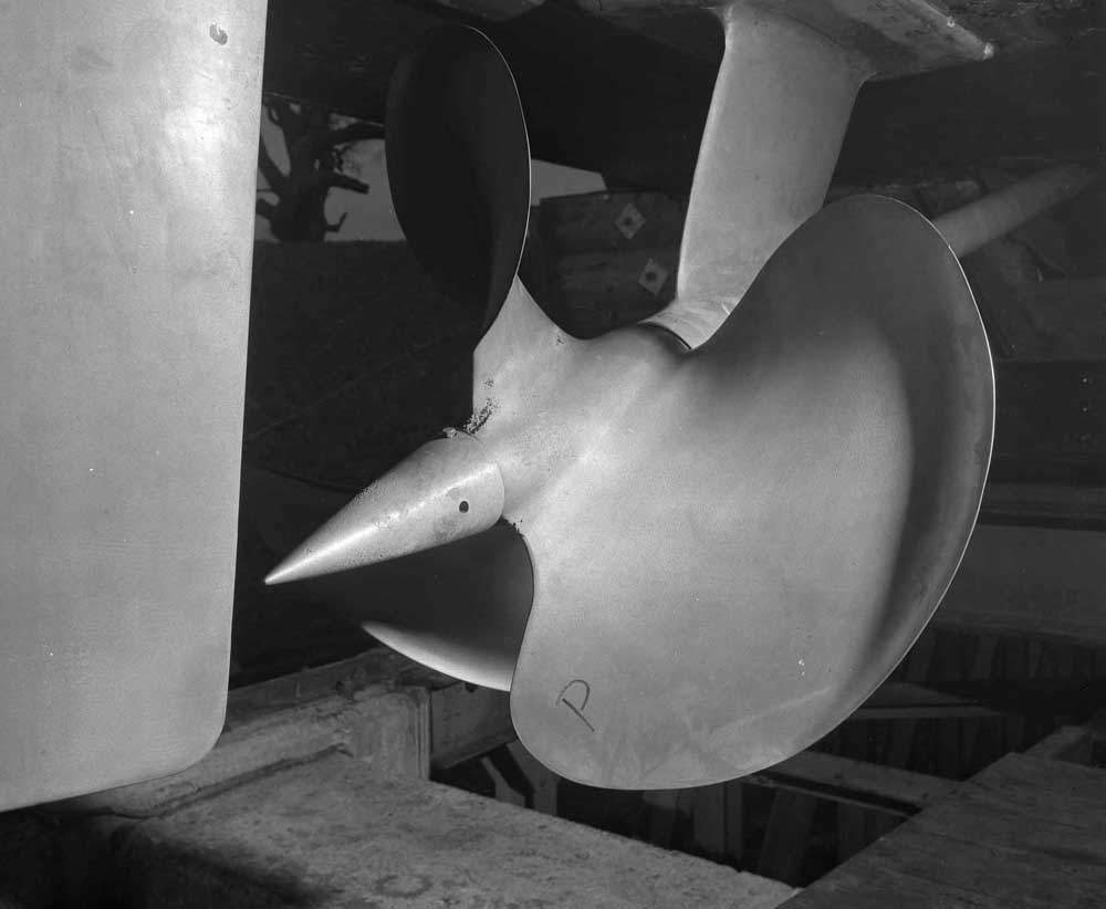 The earlier and more eleganet experimental riveted aluminium MTB 539 (later P1602) launched 1948 is today under around 43m of the Irish Sea off Anglesey and said to be 'polished shiny' by the action of tide and sand although she went down almost 60 years ago. What would a wooden hull be like after 60 years? I'm hoping to have a diver down on her this summer to check her out with a view to possible rescue. [click image for full view]